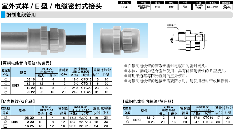 ·本體、螺帽為適合室外使用、具有優(yōu)異耐候性的E型接頭。