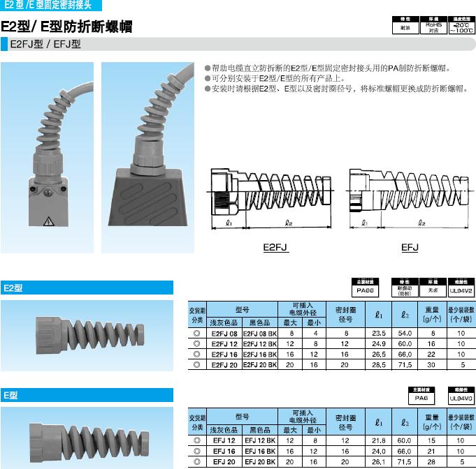 ·幫助電纜直立折斷的E2型/E型固定密封接頭用的PA制防折斷螺帽。