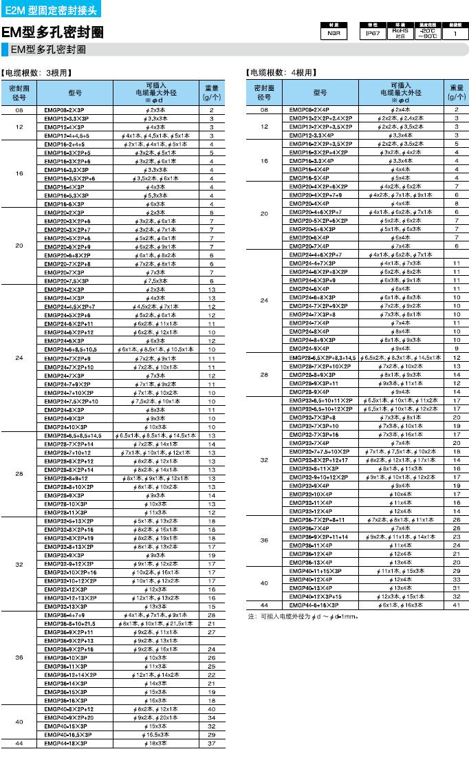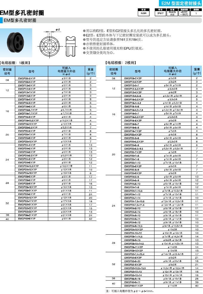 ·E2型、E型的本體與下記密封圈安裝就可以成為多孔接頭。