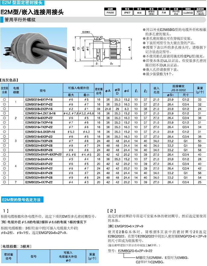·可安裝于E2型、E型和C2型的所有接頭上。請使本體和密封圈徑號的型號一致。