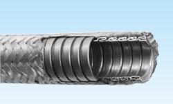 ·單扣扣合式構(gòu)造的內(nèi)芯外加編網(wǎng)的金屬軟管,均為不銹鋼制(SUS304)。適用于造船、化學(xué)機(jī)械設(shè)備等處。