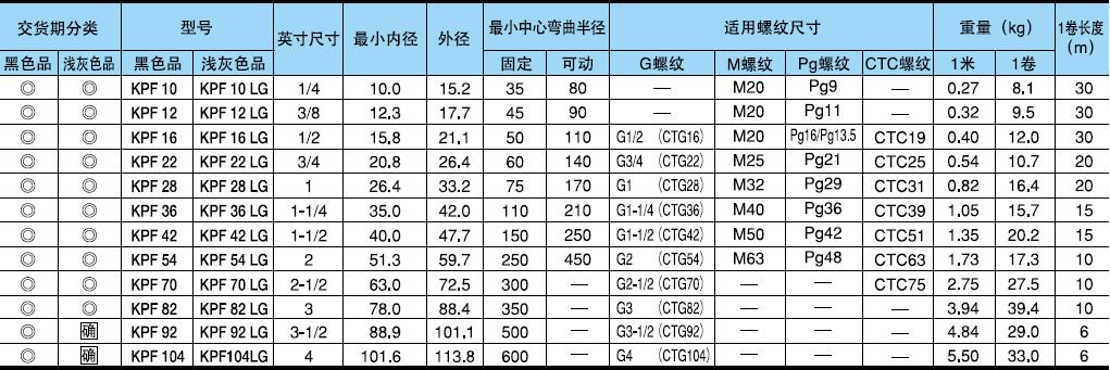 ·外塑膜顏色為茶色的產品是日本警視信號機的指定品(KPF※BR型)。#22---#54尺寸產品的庫存分類為 5。