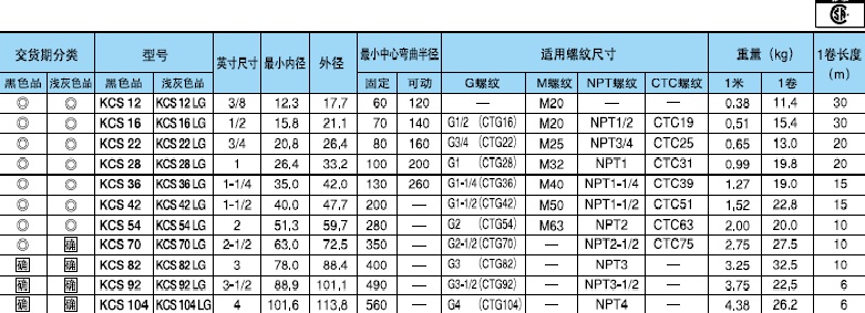·KCS型是加拿大CSA規格C22.2NO-56[Flexible Metal Conduits and Liquid Tight Flexible Metal Conduits]的認證 產品.