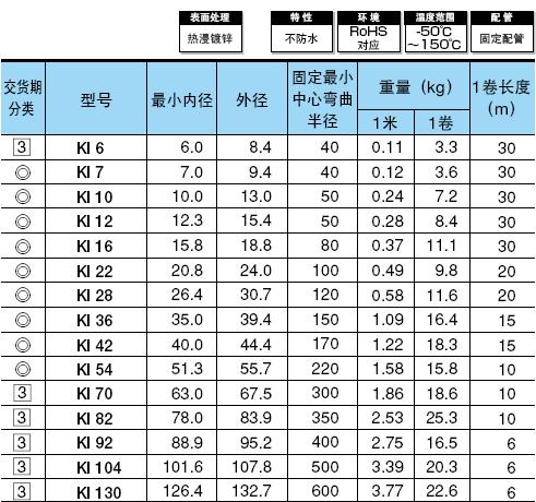 ·KI型為鍍鋅鋼帶以雙扣鎖緊式彎曲繞制,無塑膜和鋼線編織網層,只有內芯的金屬軟管。