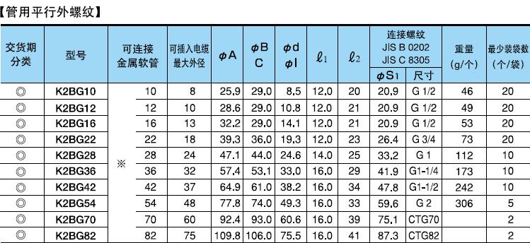 ·表中的 [可連接金屬軟管] 欄內的※號代表KMV、KMS、KIV、KIH、KPF、KIC、KPBF、KMB、KIB。