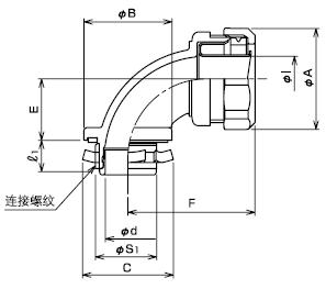 ·金屬軟管與配電盤(pán)等嵌入連接用的90°形接頭。