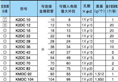 ·表中的[可連接金屬軟管]欄內的※號代表KMV、KMS、KIV、KIH、KPF、KIC、KPBF、KMB、KIB。