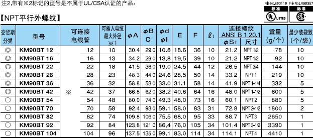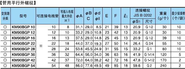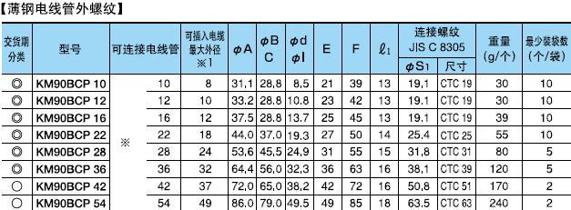 ·表中的[可連接金屬軟管]欄內(nèi)的※號(hào),代表KMS、KMV、KPF、KIC、KIH、KIV、KPBF、KUU、KCS、KMB、KIB、KM、KI。