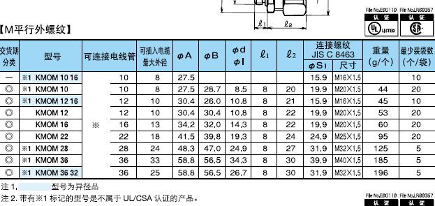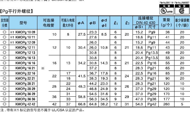 ·表中的[可連接金屬軟管]欄內的※號,代表KMS、KMV、KPF、KIC、KIH、KIV、KPBF、KUU、KCS、KMB、KIB、KM、KI。