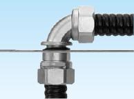 ·金屬軟管90°彎曲、彎曲部固定于6mm厚鋼板用的中繼式90°形連接器。