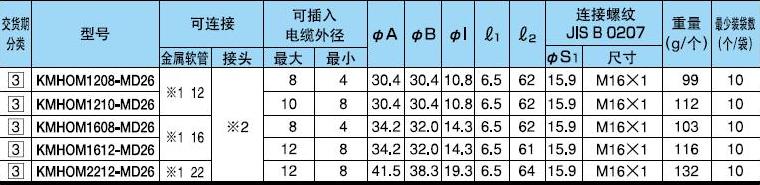 ·表中的※1號代表KMS、KMV、KPF、KIC、KIH、KIV、KPBF、KUU、KCS。