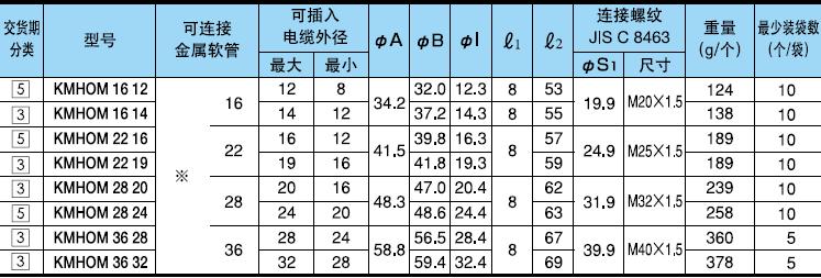 ·表中的[可連接金屬軟管]欄內的※號,代表KMS、KMV、KPF、KIC、KIH、KIV、KPBF、KUU、KCS、KMB、KIB、KM、KI。