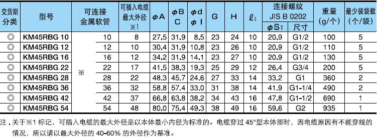 ·表中[可連接金屬軟管]欄內的※號,代表KMS、KMV、KPF、KIC、KIH、KIV、KPBF、KUU、KCS、KMB、KIB、KM、KI。