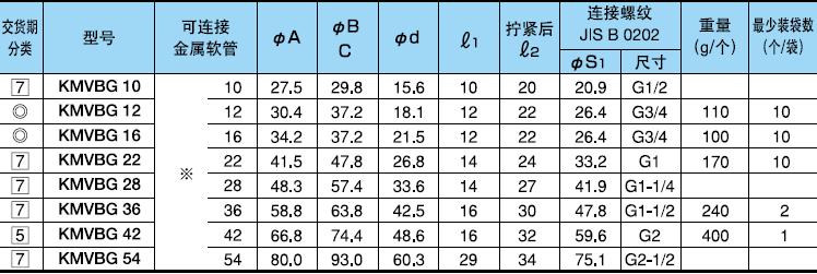 ·表中的[可連接金屬軟管]欄內(nèi)的※號(hào),代表KMS、KMV、KPF、KIC、KIH、KIV、KPBF、KUU、KCS、KMB、KIB、KM、KI。