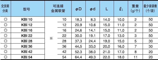 ·表中的[可連接金屬軟管]欄內的※號,代表KMS、KMV、KPF、KIC、KIH、KIV、KPBF、KUU、KCS、KMB、KIB、KM、KI。