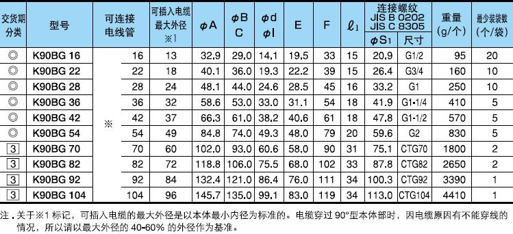 ·表中的[可連接金屬軟管]欄內(nèi)的※號(hào),代表KPF、KIH、KIC、KIV。