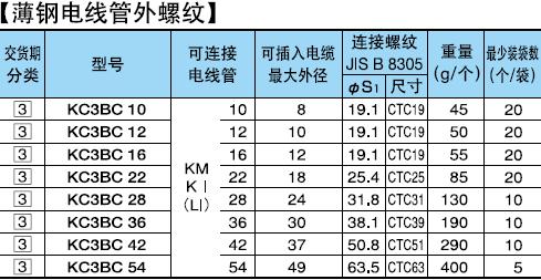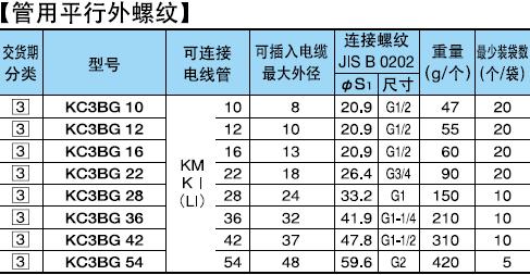 ·無外覆金屬軟管(KM/KI型)與配電盤等嵌入連接用的接頭。