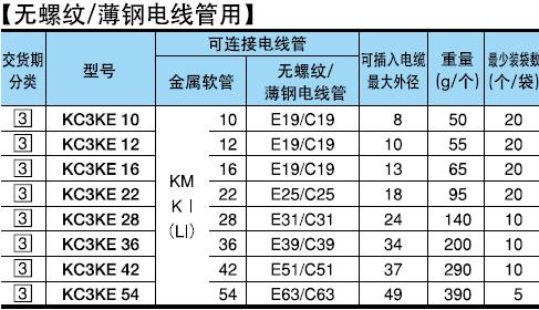 ·無外覆金屬軟管(KM/KI型)與鋼制電線管連接用的復合接頭。