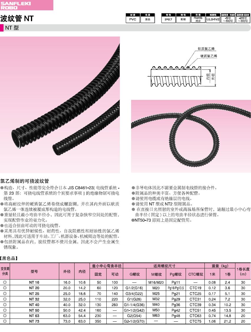 ·構(gòu)造、尺寸、性能等完全符合日本JIS C8461-23[電線管系統(tǒng)-第23部:可撓電線管系統(tǒng)的個(gè)別要求事項(xiàng)]的絕緣物制可撓電線管。