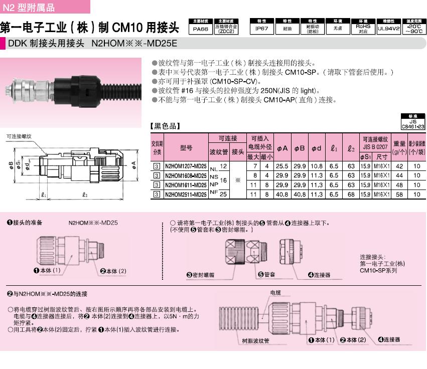 ·不能與第一電子工業(yè)(株)制接頭CM10-AP(直角)連接。