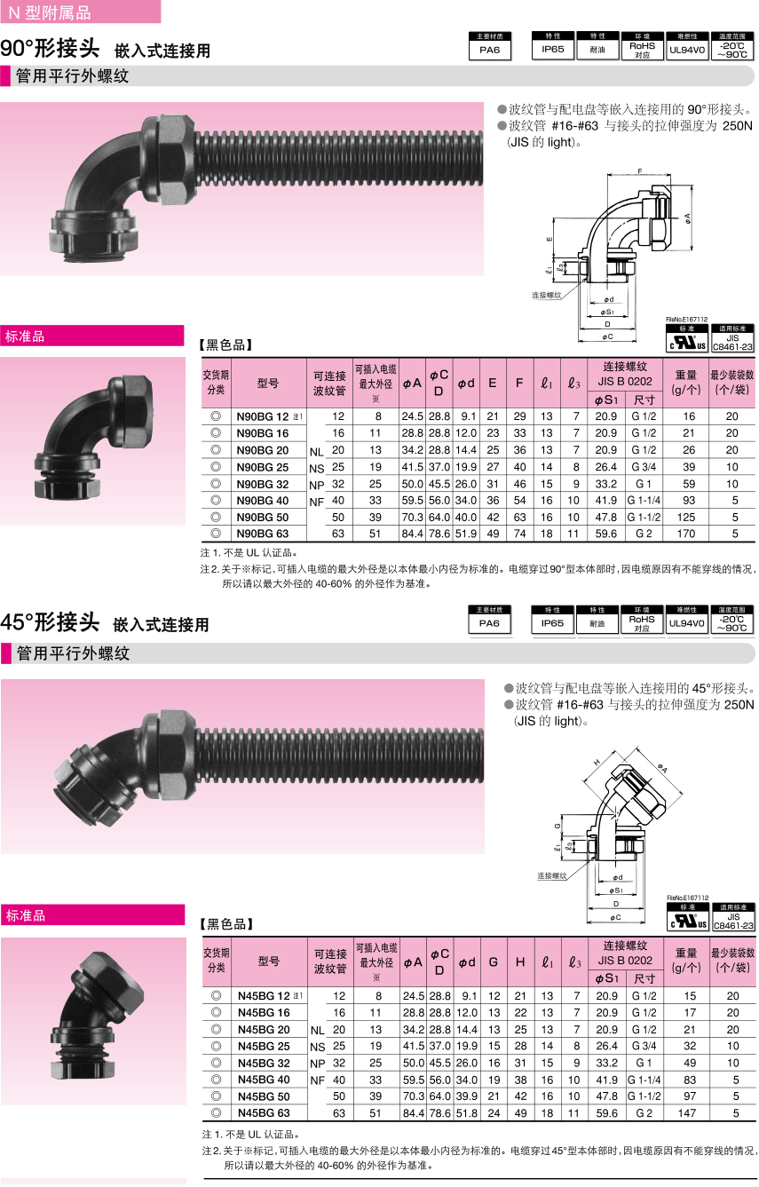 ·波紋管與配電盤(pán)等嵌入連接用90°形接頭。