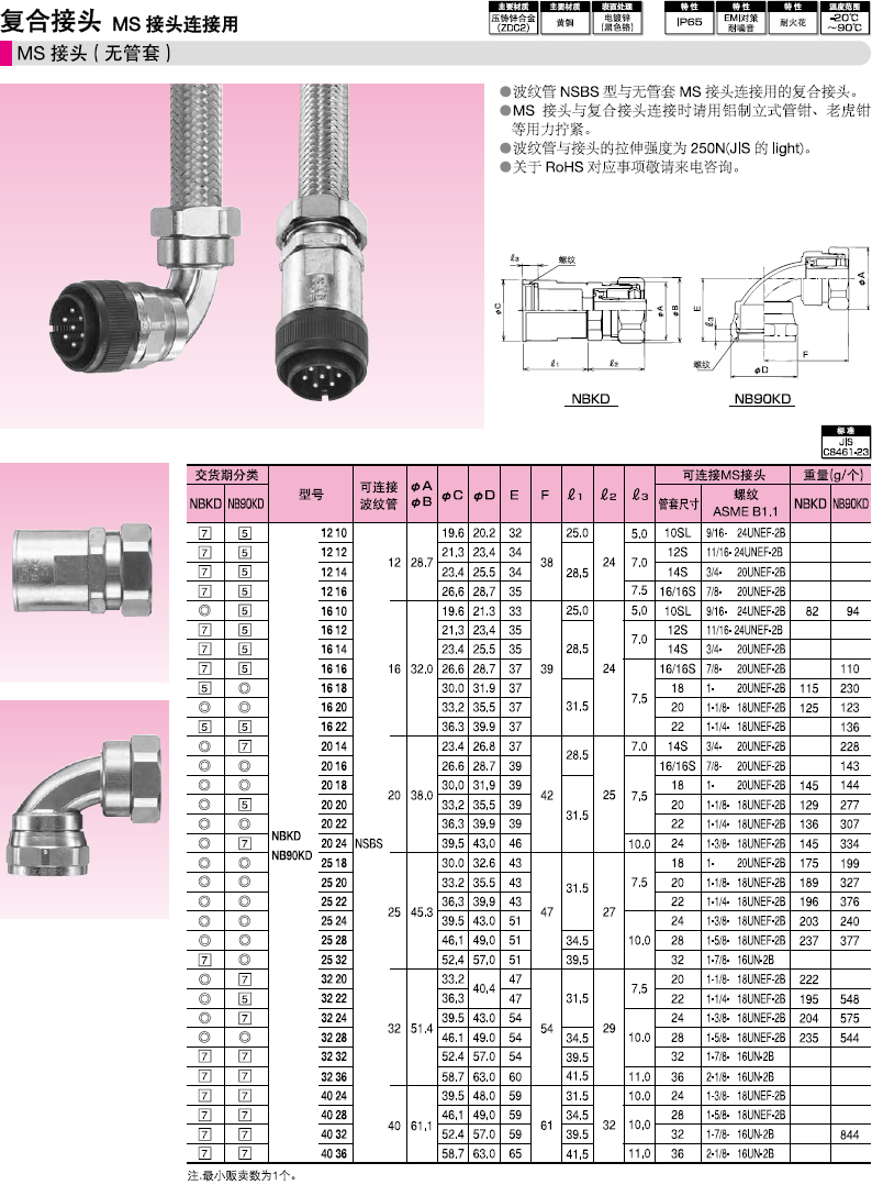 ·波紋管NSBS型與無管套MS接頭連接用的復合接頭。