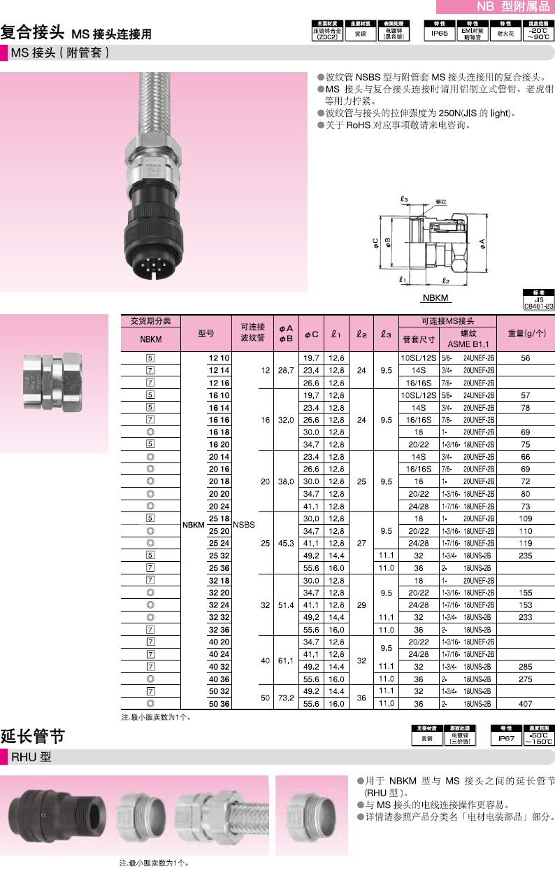 ·波紋管NSBS型與附管套MS接頭連接用的復合接頭。