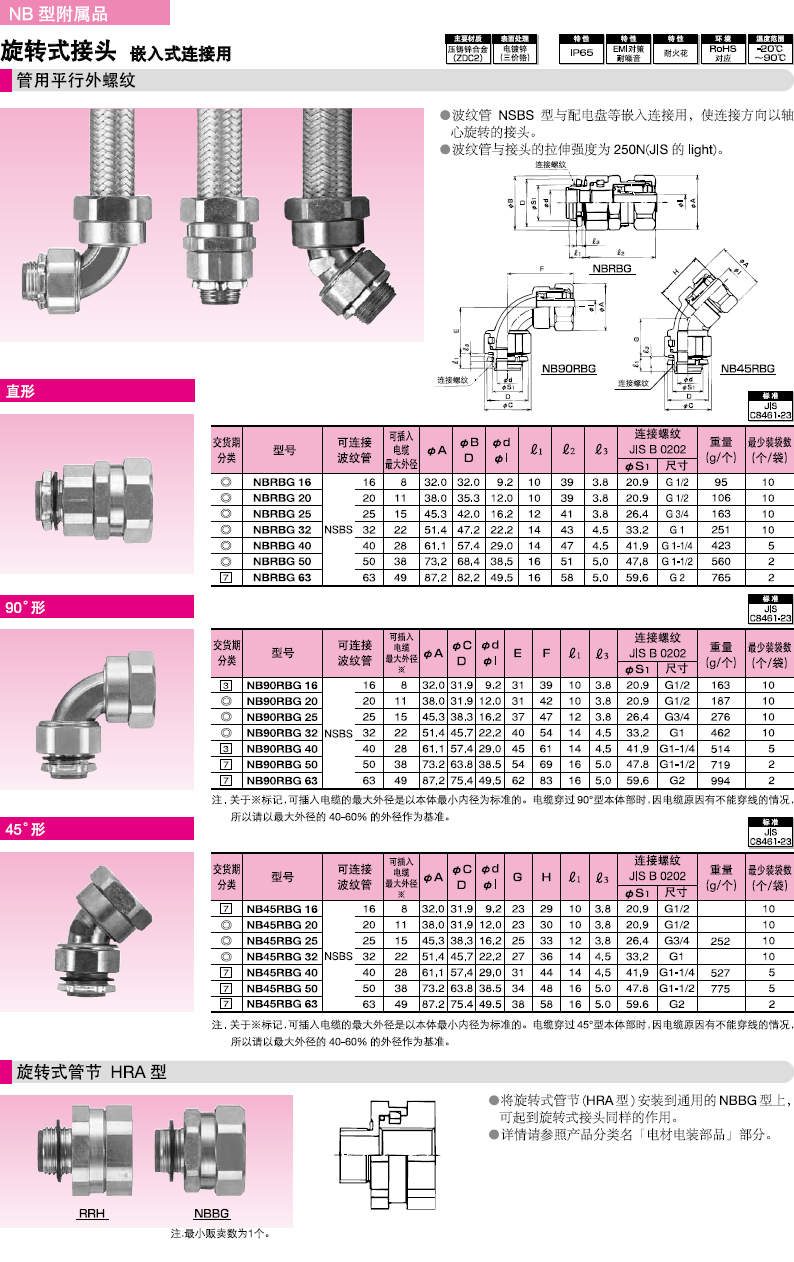 ·波紋管NSBS型與配電盤等嵌入連接用,使連接方向以軸心旋轉的接頭。