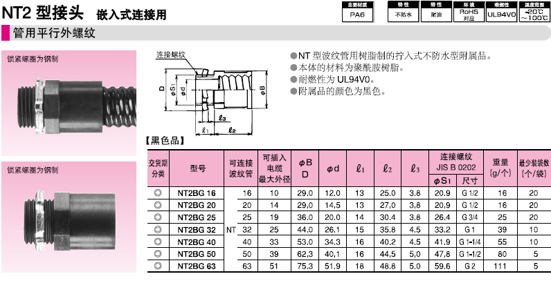 ·NT型波紋管用樹脂制的擰入式部防水型附屬品。